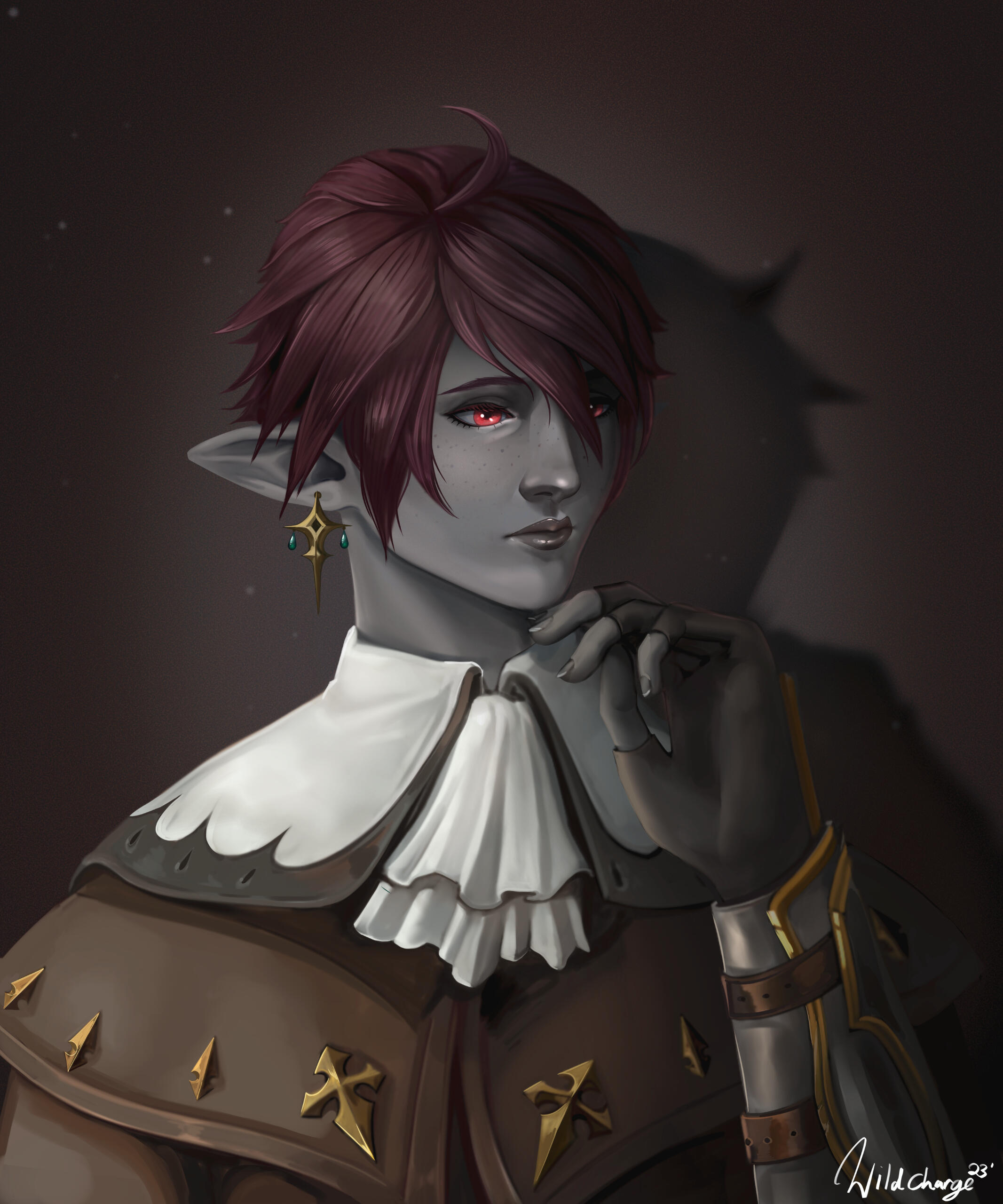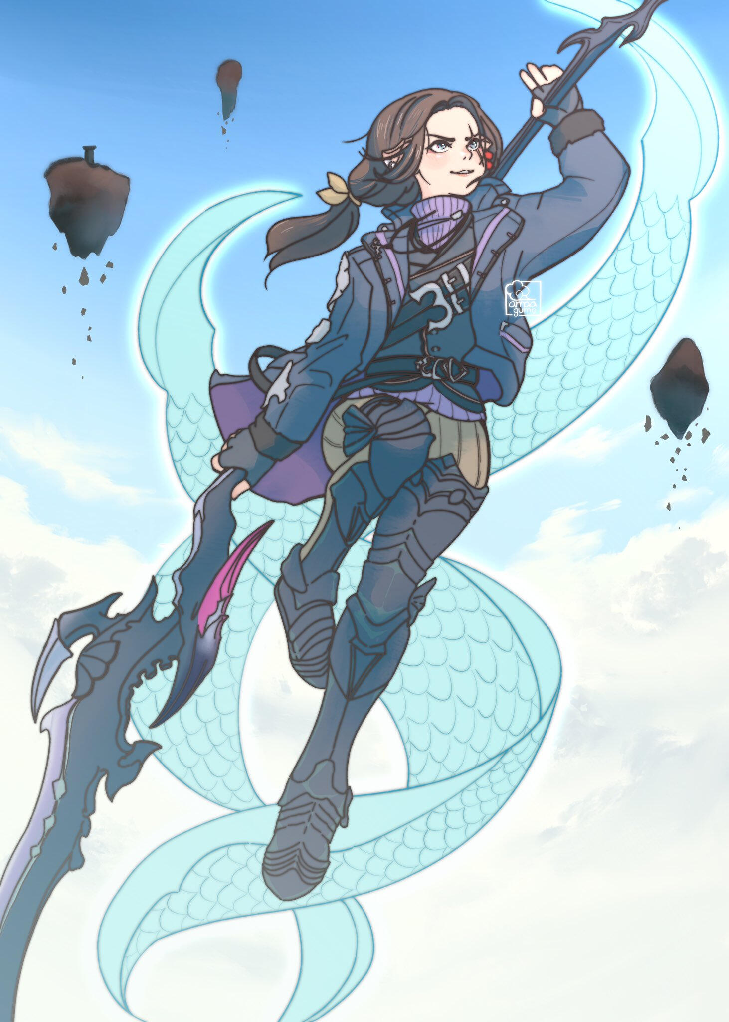 Ishant was made as a spin on a shounen protagonist, mixing all the absurd power of one with a bit more nuance. Despite her skill in combat, she struggles to grapple with the things she's done and people she's wronged. Thinking herself wholly just once upon a time, her story now turns to examine the ashes left behind in her wake, making allies of old foes and reconciling with the individuals that she used to take for granted.Of course, Ish is also a very comedic character, possessing a disposition for levity and sarcasm on and off of the field of battle. While interacting with this Dragoon's tale, never expect her to take herself too seriously. More often than not, she's the ass of her own jokes.