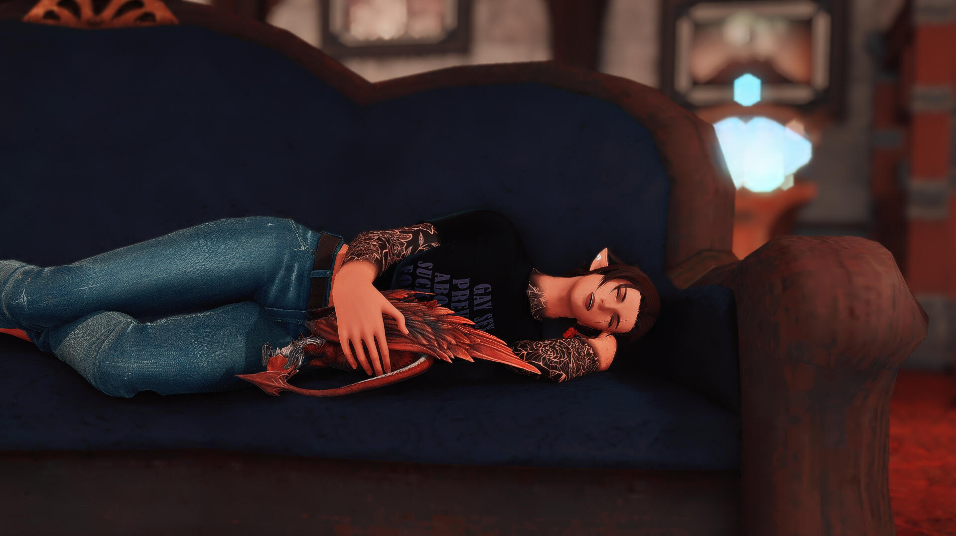 Laine is a massive juxtaposition. She's silly and quite clumsy, but at the same time, incredibly competent when the situation arises. She likes to make herself seem small and unassuming, especially after all she's been through, but many may still remember her for her heroic deeds during the war between Eorzea and Garlemald.
