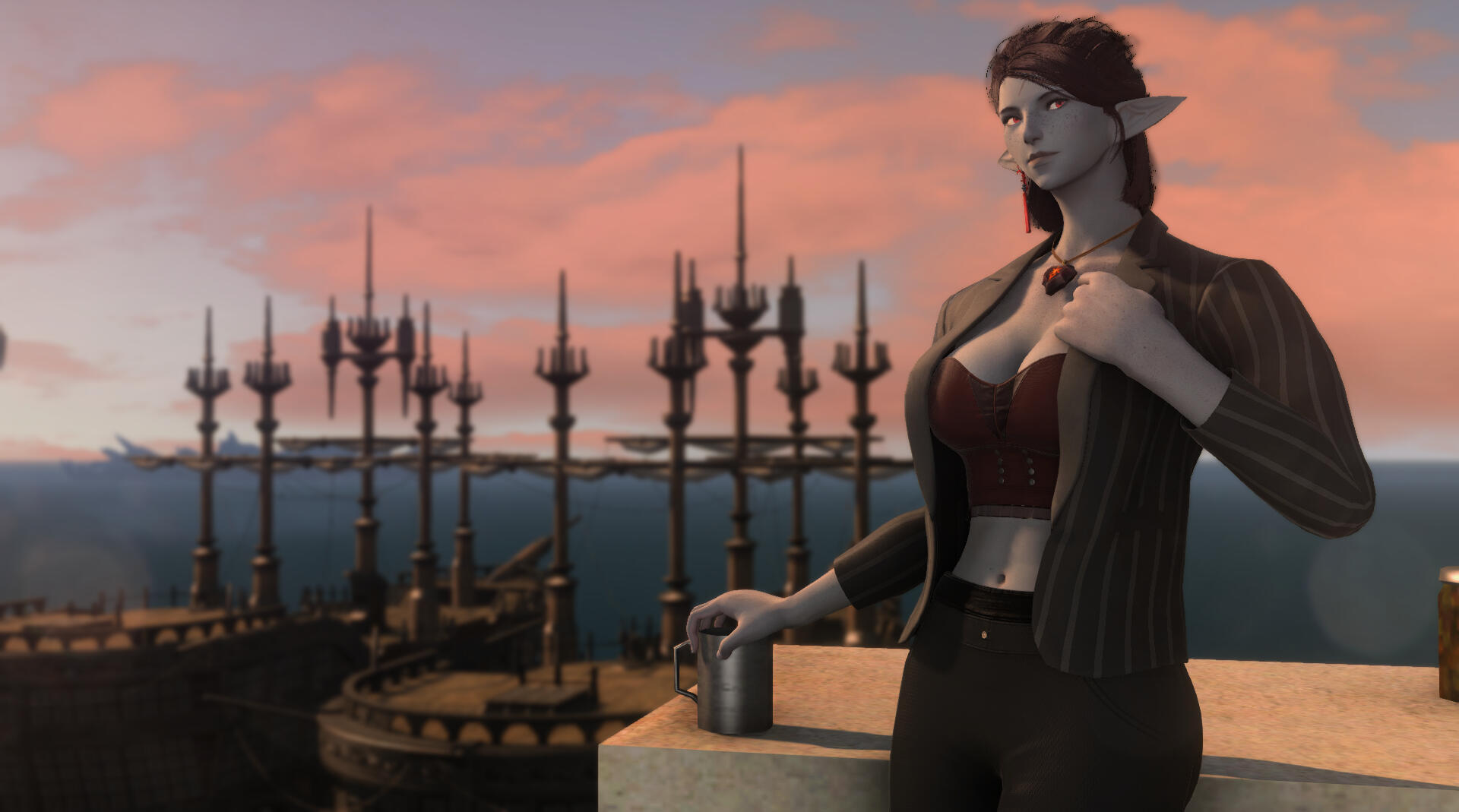 Booze, sailing, women, parties, and even more of each.On the surface, that's about all the depth that one Minato Hamasaki bears in her life as she toils away at Kugane's docks. Though beyond the party-girl exterior lies a quick-witted and often determined thief with a heart of gold, for good or ill. Knowing her, countless hijinks are likely to ensue.
