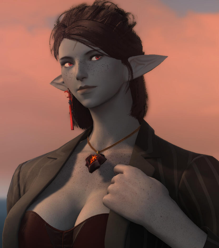 Lies, lies, lies. Minato is a pile of lies and fibs, both to herself and others. She walks with infinite bluster and can easily charm a room if she puts her mind to it. Quite the thief as well, Minato has a chip on her shoulder when it comes to the wealthy and privileged. She sees it as her own mission to knock them down a peg when she can, delighting in taking wealth from them.As it currently stands, Minato's story sees her confronting herself and her desires. She flees from a Thieves' Guild based in Kugane, something that she thought would bring the desired stability to her life only serving to destabilize it instead. What she truly wants for herself has yet to be revealed to her, yet one day soon it may show itself. Even still, she asserts she knows exactly what she desires.