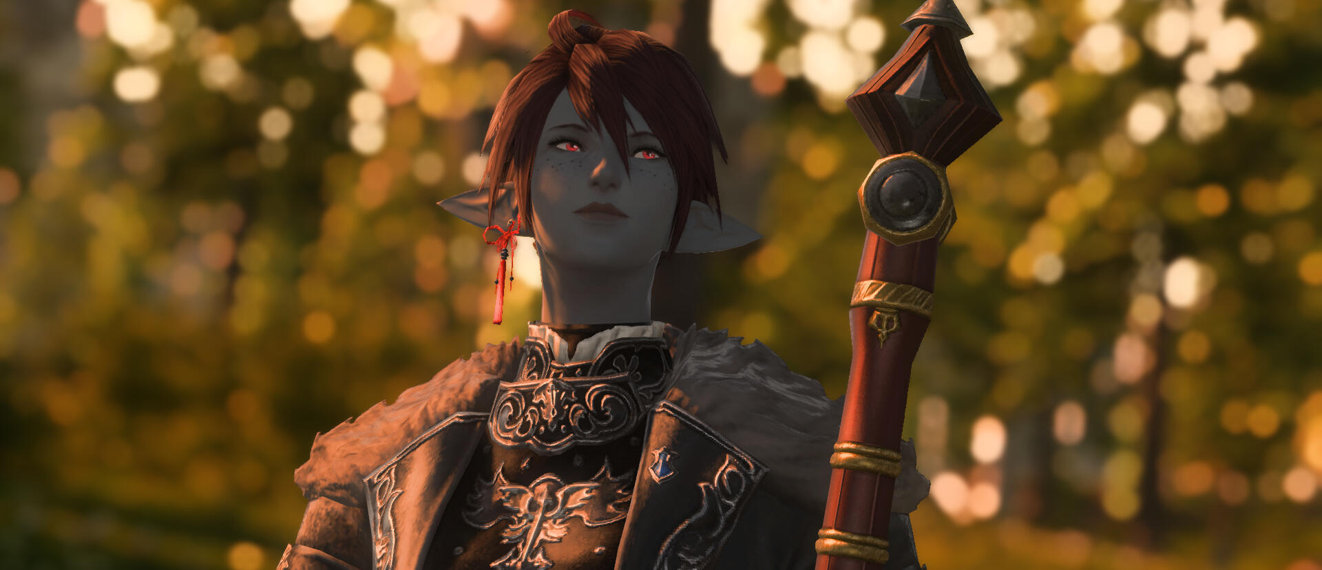 A once-ambitious member of Ishgard's Knights Dragoon, Ish has since fallen from such lofty heights. So far, in fact, that she learned the truth of the Dragonsong War and swore her loyalty to the heretical Harriers. Nowadays, she finds herself as an advocate for unity between Man and Dragon upon Hydaelyn.Glaive in hand, she seeks to give her all for a dream of peace rather than some notion of glory, pride, or vengeance.